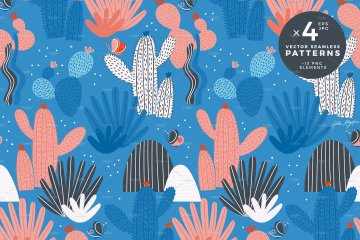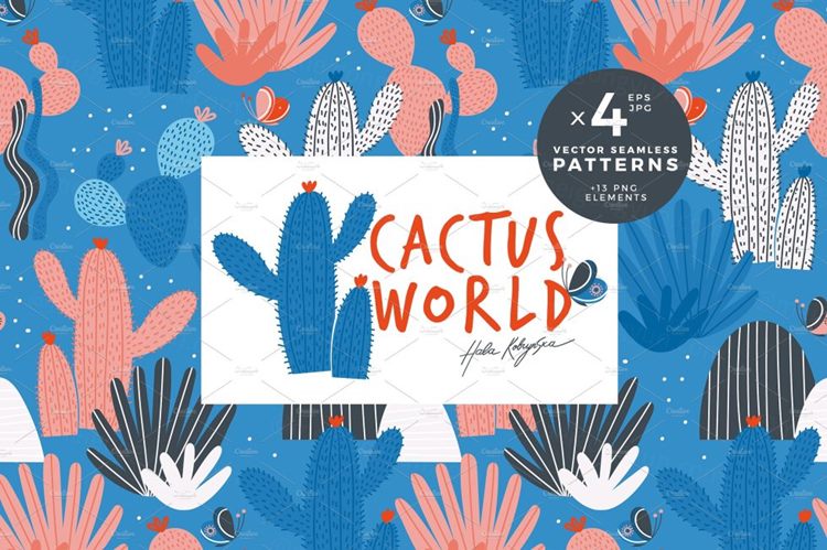 图穷联素材库 » 热带丛林可爱仙人掌矢量无缝纹理素材 Cactus world