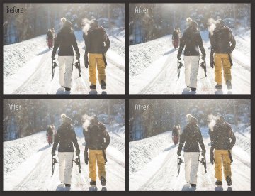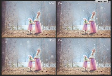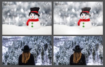 该套件包含不同的积雪覆盖物。它们易于使用,可以结合使用以获得非常逼真的外观。让你的照片更有趣和美丽。看看“之前/之后”的预览 - 你可以用你的照片做到这很简单。