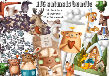 图穷联素材库 » 可爱手绘矢量动物大集合Big Animal Bundle