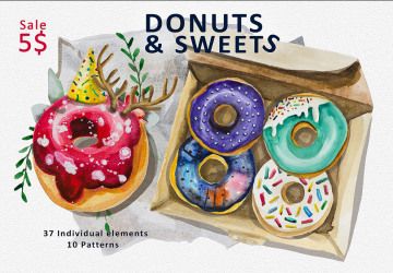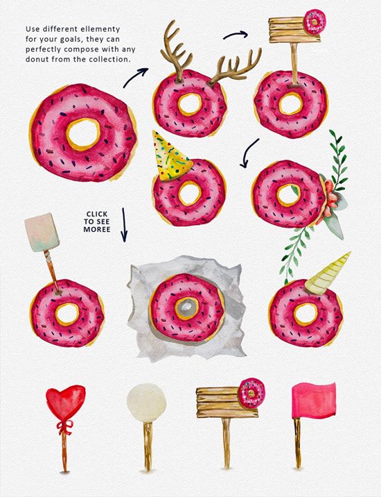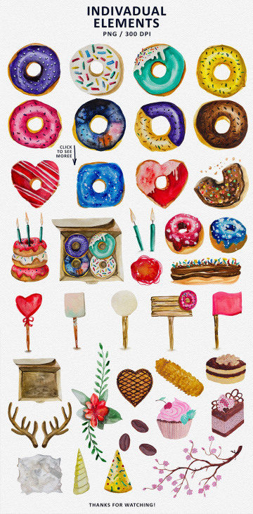 图穷联素材库 » 手绘水彩插画风格甜点素材元素Dessert material