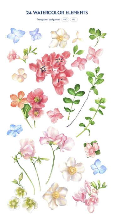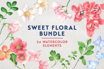 甜美的花卉矢量水彩素材包 Sweet Floral Wate