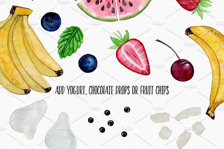 图穷联素材库 » 夏日水果和浆果水彩画高清免扣素材 FRUITS + BERR