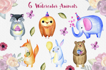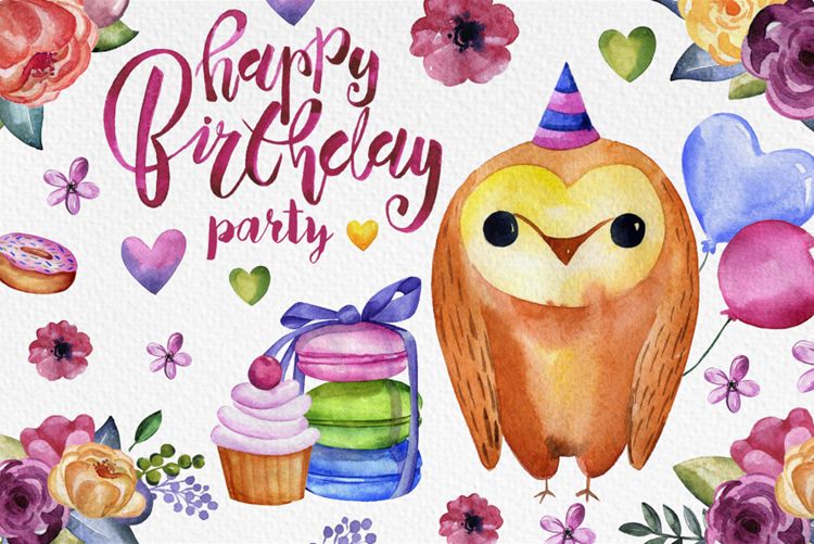 图穷联素材库 » Happy Birthday Party 水彩手绘生日派对元