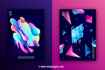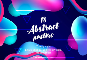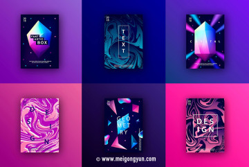 18款现代抽象科幻海报合辑,里面有多色晶体和几何多边形金字塔,液体形状,大理石纹理,能帮助您快速打造一个时尚前卫的广告设计,enjoy!