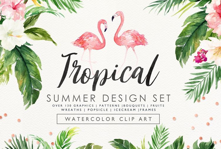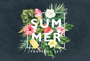图穷联素材库 » 手绘水彩夏日热带PNG免扣元素合集包 Summer Desi