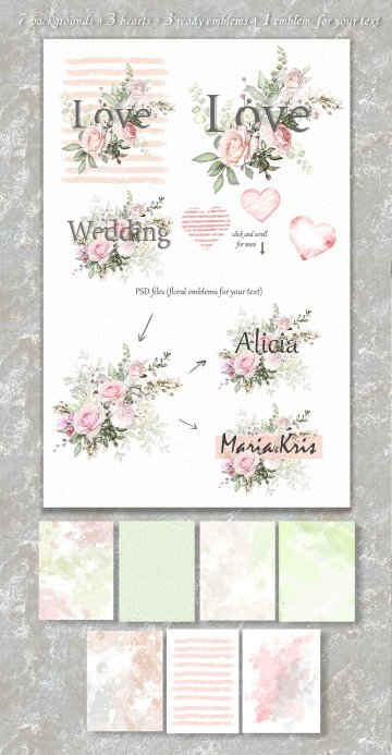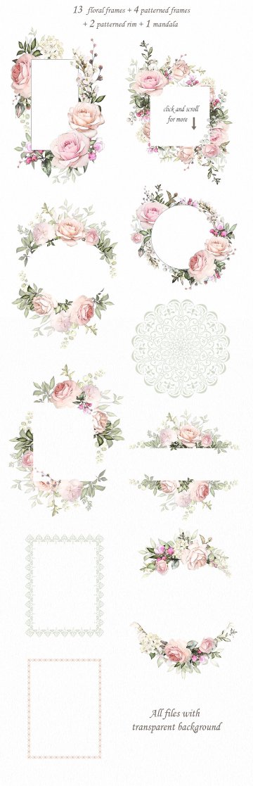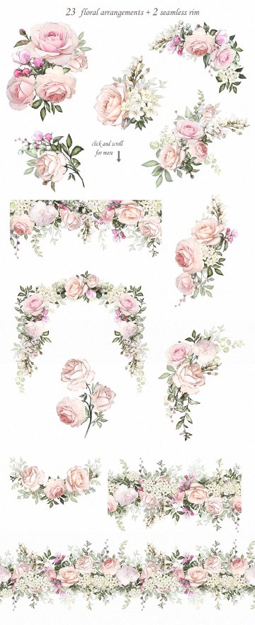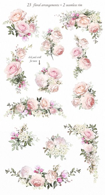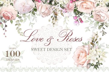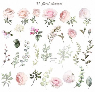 图穷联素材库 » 浪漫水彩花艺PNG免扣插画元素合集包 Love Roses