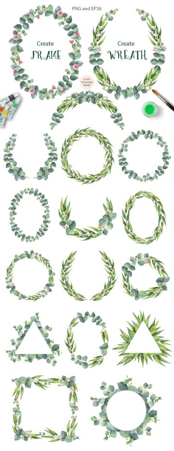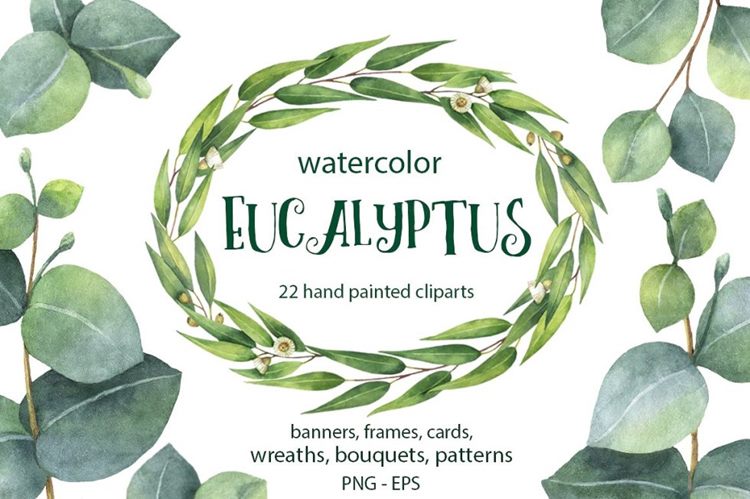 图穷联素材库 » 澳大利亚桉树手绘水彩花环花束合集包 Watercolor E