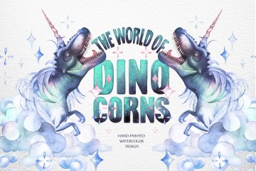 图穷联素材库 » 手绘独角兽恐龙水彩画素材集合包 Watercolor Din