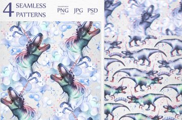 手绘独角兽恐龙水彩画素材集合包 Watercolor Din