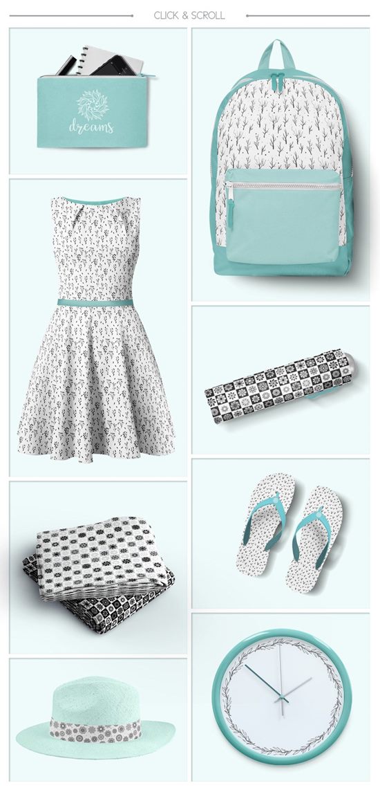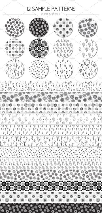 图穷联素材库 » 漂亮的手绘花卉植物剪贴画背景图案素材 Hand Drawn
