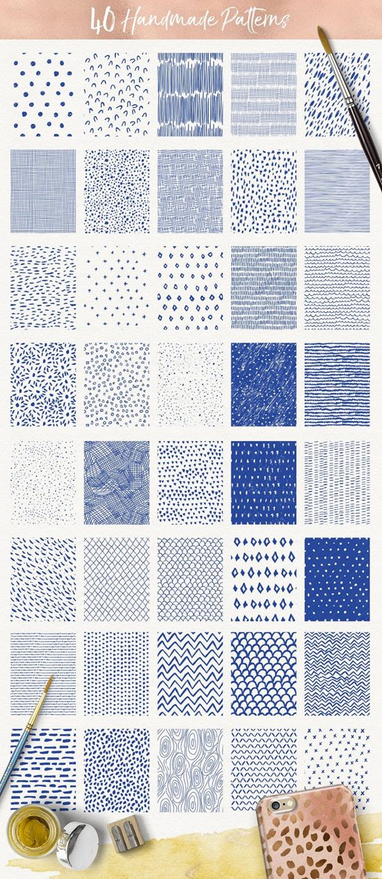 40个手工制作的图案,保存为Ai文件和png文件以及photoshop pat文件。