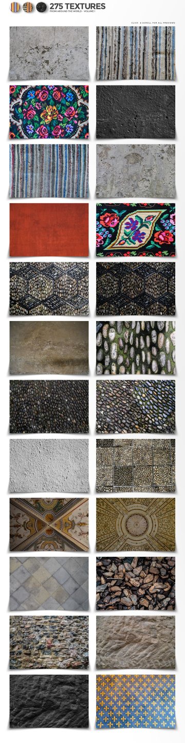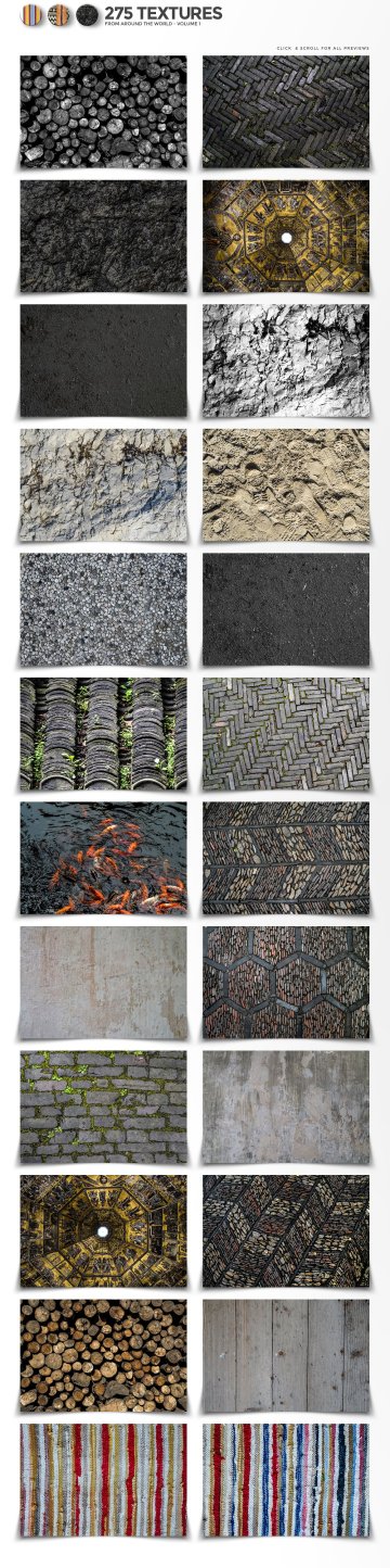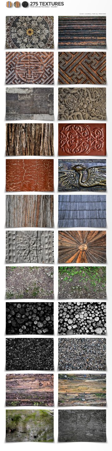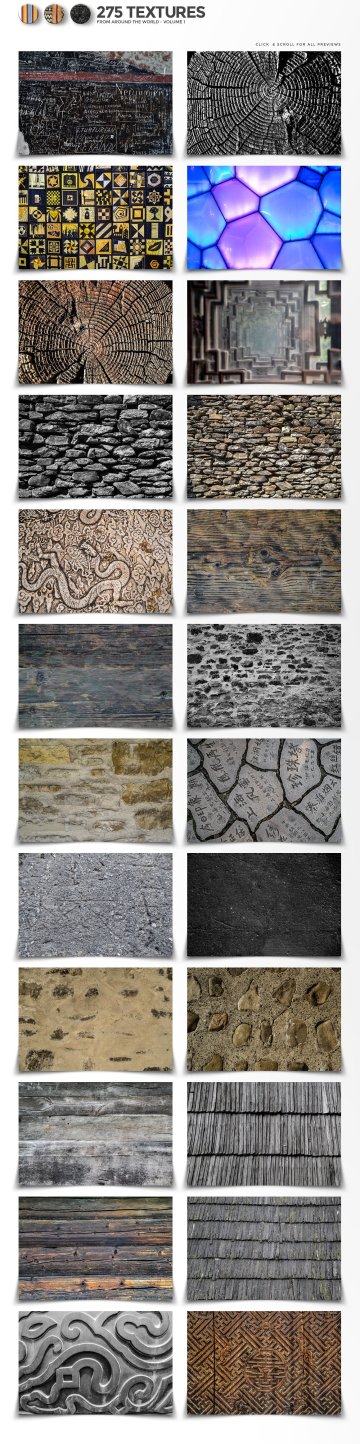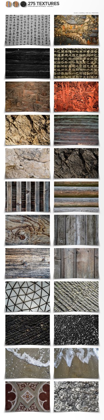 来自世界各地的大量纹理!所有这些照片都是在过去几年拍摄的,在世界不同地区拍摄的照片,如中国长城的砖块,希腊古城德尔斐的墙壁文字,意大利和摩洛哥的惊人天花板等等。其他国家!