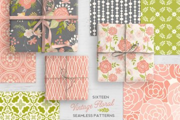 经典的花卉素材和几何图案素材 Vintage Floral
