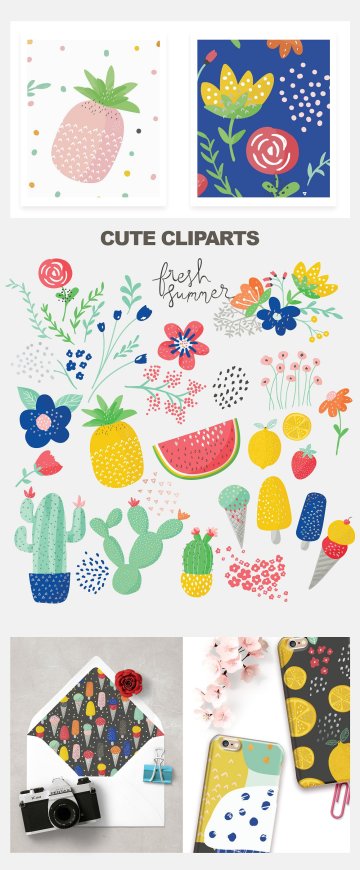 图穷联素材库 » 可爱插画无缝背景Fresh Summer Patterns