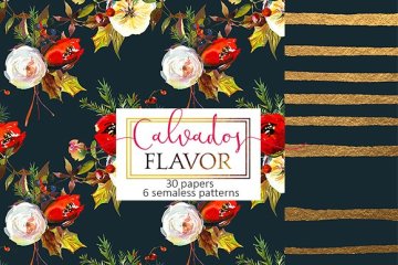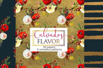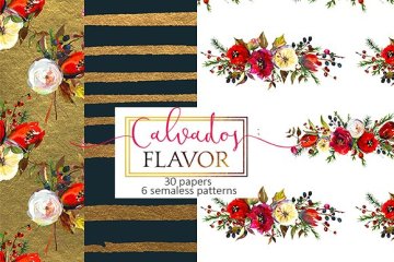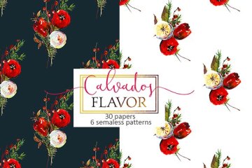 圣诞主题手绘花卉图案设计素材Christmas floral