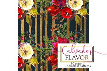 图穷联素材库 » 圣诞主题手绘花卉图案设计素材Christmas floral