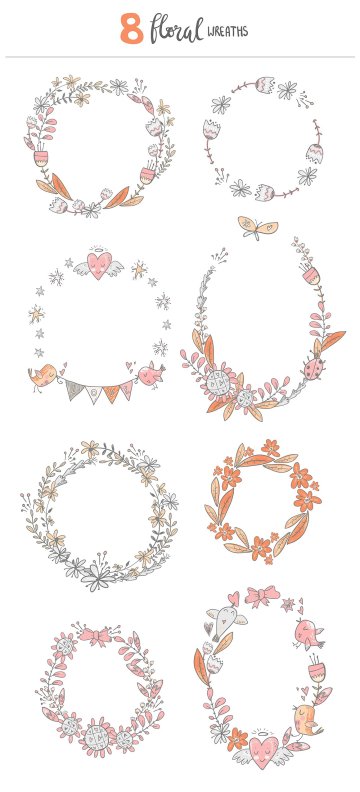对象,花圈,花束,卡片 - AI,EPS,JPG,PNG