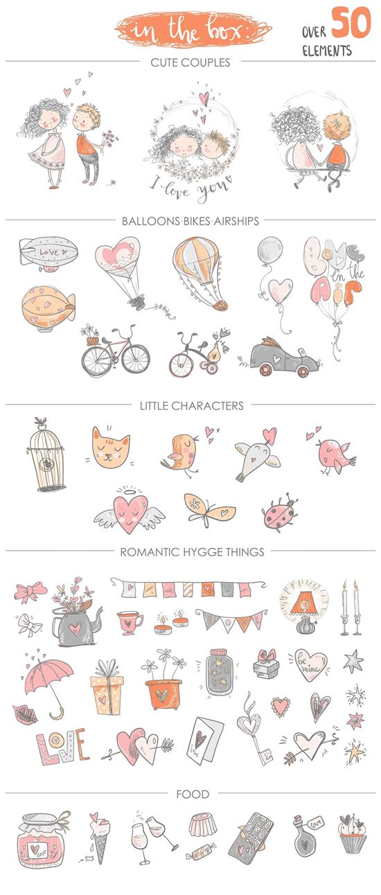浪漫爱情主题卡通手绘素材下载[ai,eps,psd,png,