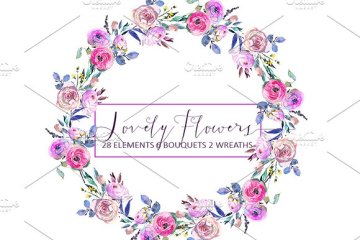 图穷联素材库 » 手绘水彩花卉植物设计素材Pink Watercolor Fl