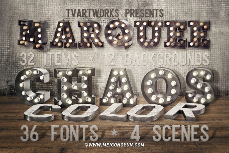 36色高分辨率复古灯光特效立体数字字母字体合集