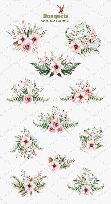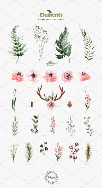 图穷联素材库 » 手绘花卉植物设计元素Watercolor Forest Sc