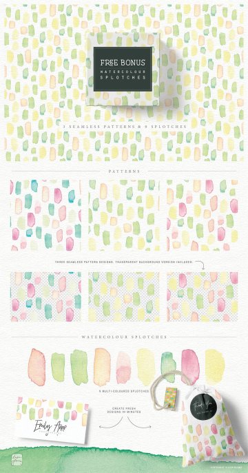 这套包括4个优质系列,另外我还包括水彩笔斑点和图案的必备奖励!