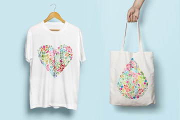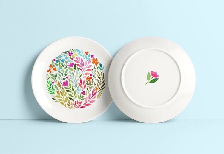水彩花卉图案椭圆形心形水滴形状图案素材 Watercolor