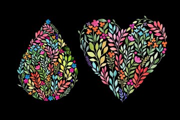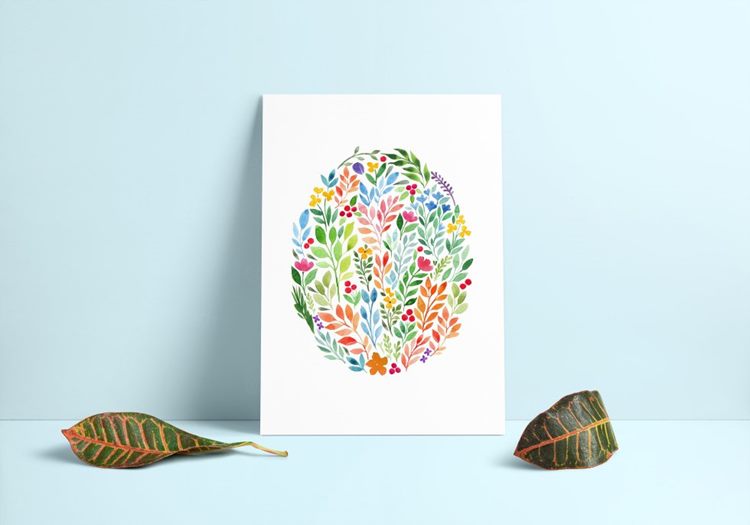 图穷联素材库 » 水彩花卉图案椭圆形心形水滴形状图案素材 Watercolor