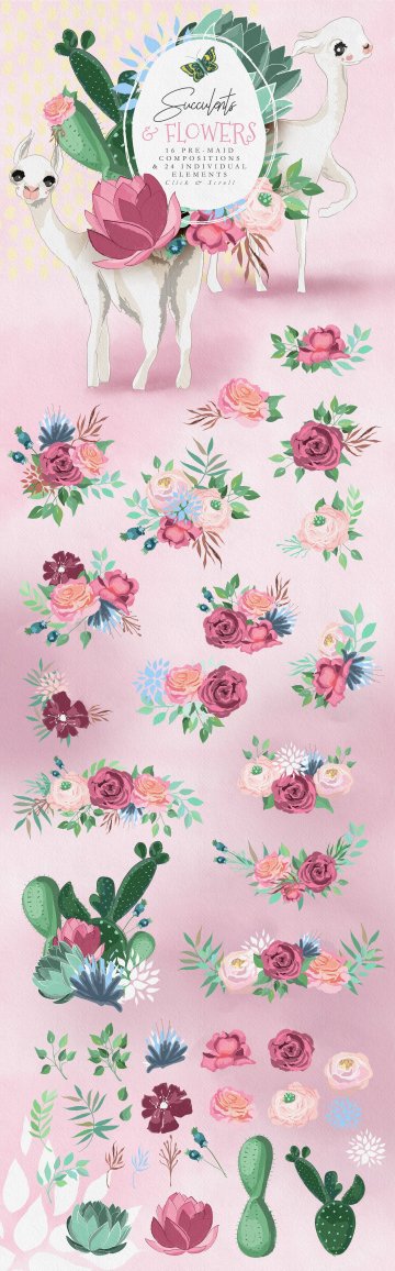 系列包括美丽的骆驼,玫瑰和牡丹花环和装饰品 - 蝴蝶结,地毯,蝴蝶,包,鼓,绒球,颈部和头部装饰。包括两个变体的漂亮的小女孩,以及带有文字标签的篮子 - 装饰它!非常适合生日和派对邀请函和其他文具,苗圃墙艺术和儿童时尚。混合和匹配元素,以创建自己的惊人场景!许多花卉单个元素和预制成分将是您设计的重要补充。框架,丝带,背景元素,数字纸和当然花木无缝模式。收藏包括创造美丽的骆驼主题设计所需的一切。