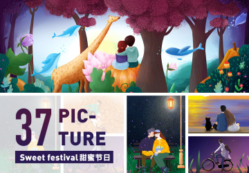 图穷联素材库 » 37张卡通手绘浪漫七夕情人节情侣甜蜜约会插图PSD设计素材V