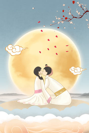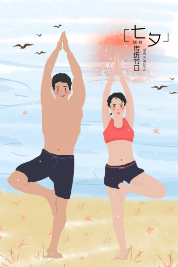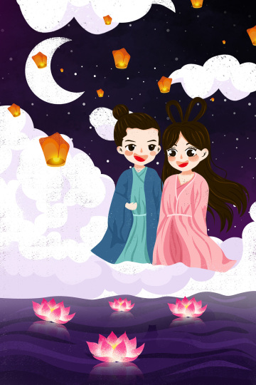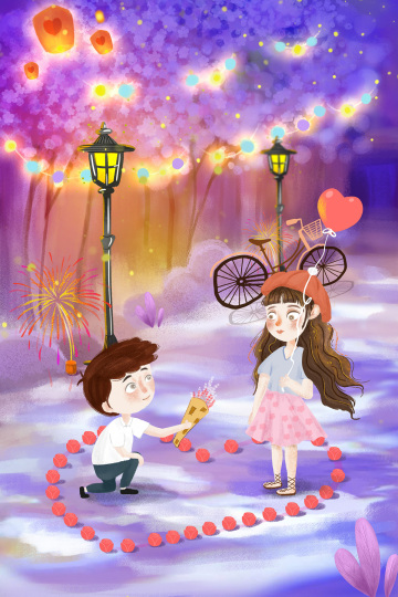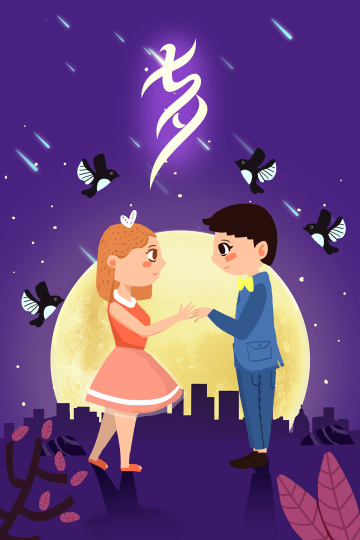 图穷联素材库 » 28张卡通手绘浪漫七夕情人节情侣甜蜜约会插图PSD设计素材V