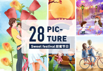 28张卡通手绘浪漫七夕情人节情侣甜蜜约会插图PSD设计素材V