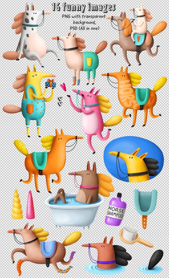 卡通马PNG0免扣剪贴图素材合辑 Collection of