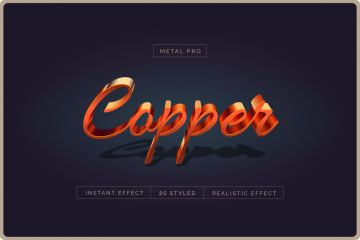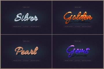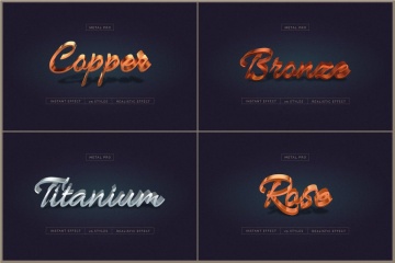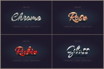 高品质的3D立体金属效果Illustrator图层样式,包含25个Adobe Illustrator的高质量图形样式。您可以将这些样式应用于任何文本,即使应用了效果,您也可以编辑文本。也可以将这些效果应用于矢量对象。所有25种款式: – 金,玫瑰金,青铜,银,钢,铜,珍珠,棕色,铬,钛,??黄铜,碳,光泽,铝,光面纸,蓝宝石,宝石和鲁比。