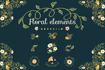 所有花卉和花朵元素和组合,如preview1和preview2所示,但没有文字。
