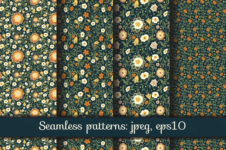图穷联素材库 » 漂亮的手绘花卉无缝背景素材 Fantasy Flowers