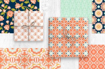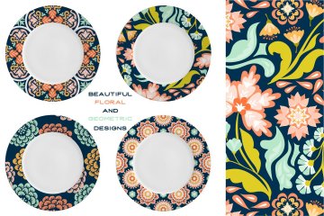 图穷联素材库 » 现代花卉和几何形状无缝背景素材Indigo and Papa