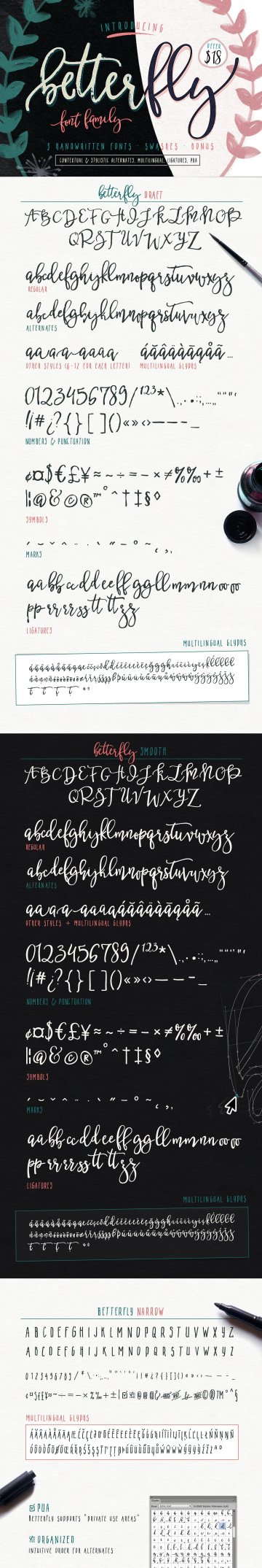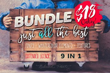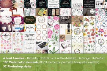 嗨,您好!我很高兴你惊喜!所有最好的项目(包含4个字体系列,180多个水彩元素,50 + photoshop样式)捆绑价格只需18美元。这个包包括我的顶级脚本字体:BetterFly,Flamingo,TheSecret。此集合包括Web字体和扩展许可证。