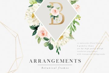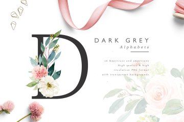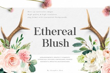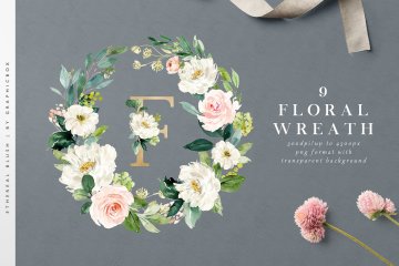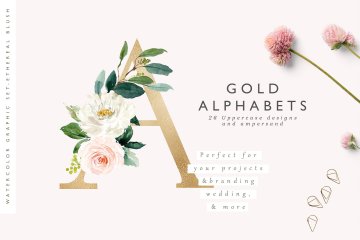 水彩+字母+花卉的设计素材 Ethereal Blush-F