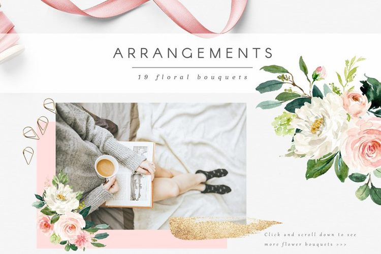 图穷联素材库 » 水彩+字母+花卉的设计素材 Ethereal Blush-F