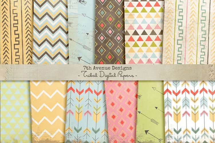 图穷联素材库 » 可爱部落元素的背景纹理素材 Tribal Digital P
