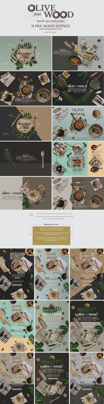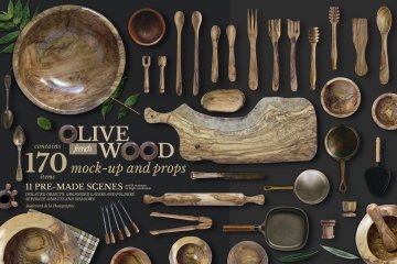 图穷联素材库 » 高端法国橄榄木厨房用品展示模型mockups