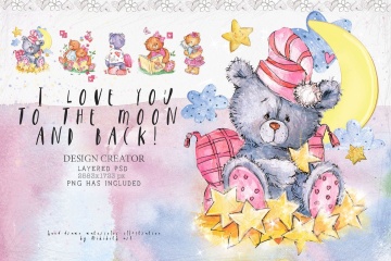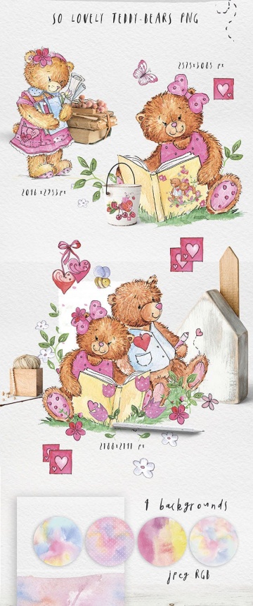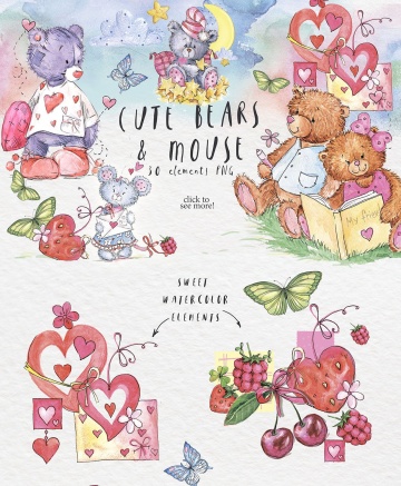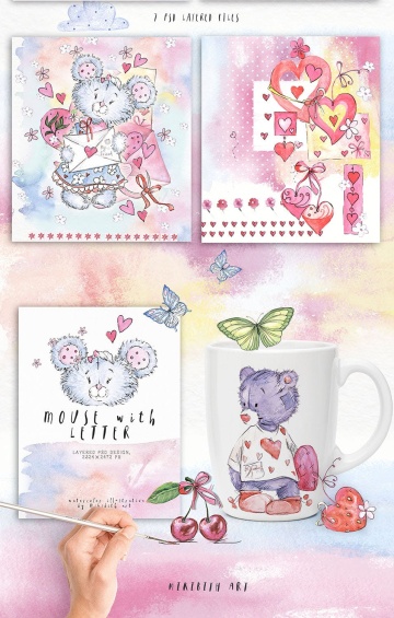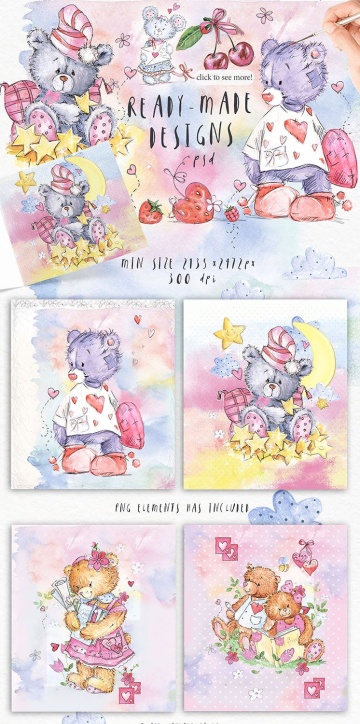 5个字符水彩,30多个PNG元素,7个预制分层设计和1 psd创作者。希望你会喜欢这个系列!