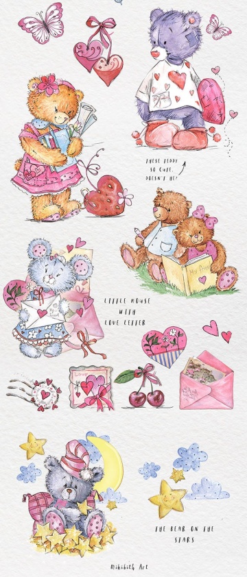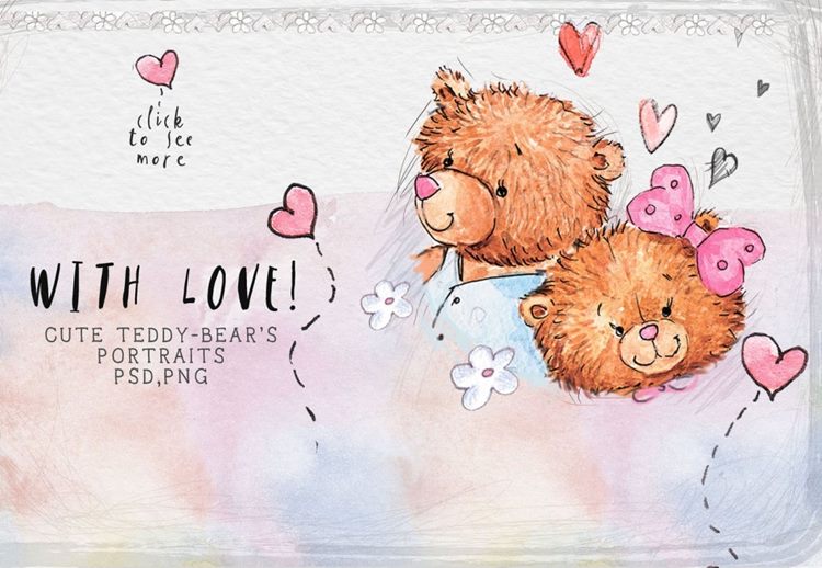 图穷联素材库 » 手绘情人节可爱小熊水彩素材PNG素材