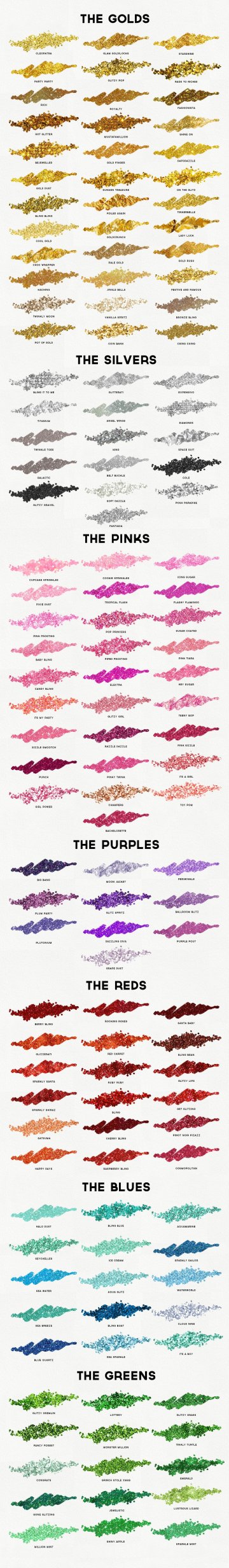 在彩虹的彩虹中,以适合任何项目的blingy纹理Oodles!Glitzy Golds,Silvers,Blues,Pinks,Reds,Greens,Purples ......只是因为你无法找到你想要的阴影,我已经包含了一个快速简单的指南,介绍如何在几秒钟内创建自己独特的颜色!