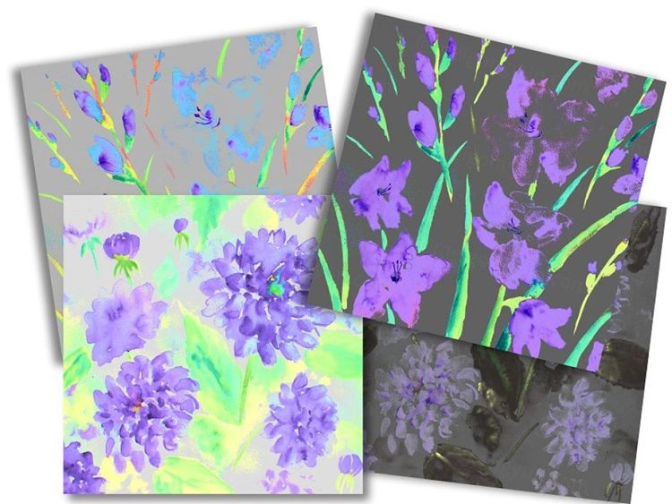 图穷联素材库 » 绚丽紫色的水彩花卉背景纹理 Watercolor Flora
