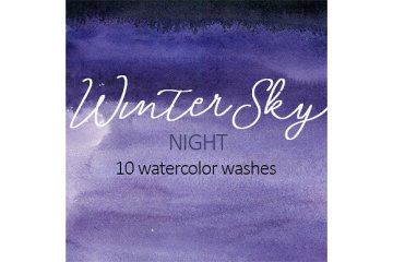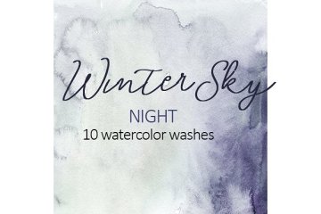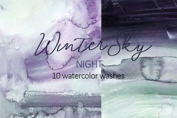 图穷联素材库 » 手绘水彩冬季紫色天空素材Winter Sky Purple