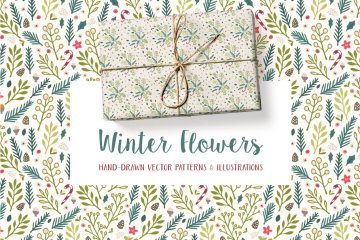 图穷联素材库 » 冬天风格的圣诞花卉图形背景纹理素材 Winter Flowe