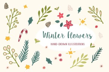 这一款手绘的冬天花卉图案集的设计灵感来源于自然它非常适合你的圣诞节或寒假设计项目。