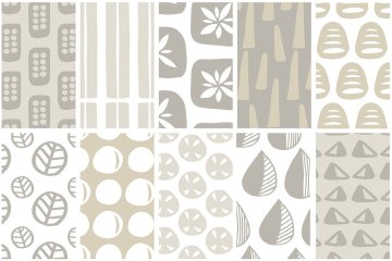 所有图案都有简洁的线条和自然的形状,它们精致,简单,建议的颜色采用冷灰色和奶油色调。